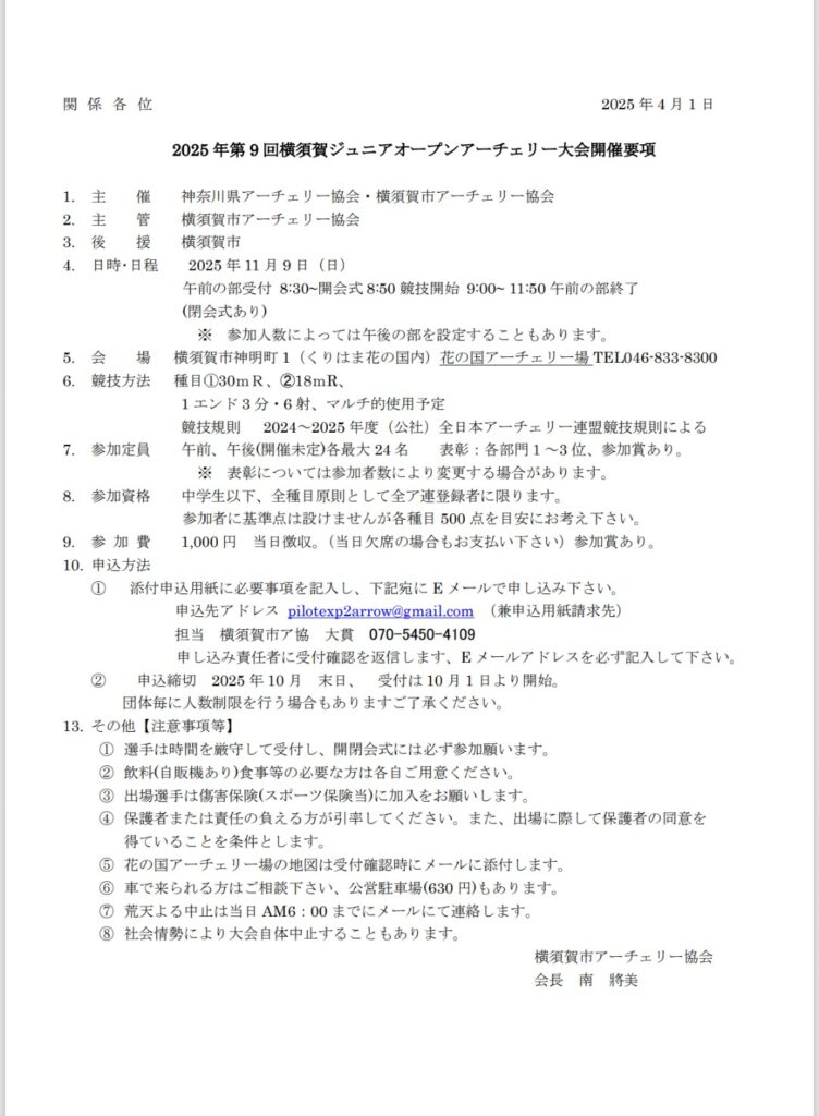 参加者が 40 名を超えた場合、部門別に 2 部又は 3 部制での開催とし競技会 1 週間前までに県ア協 HP 上に集合時間、立順を掲示します。
